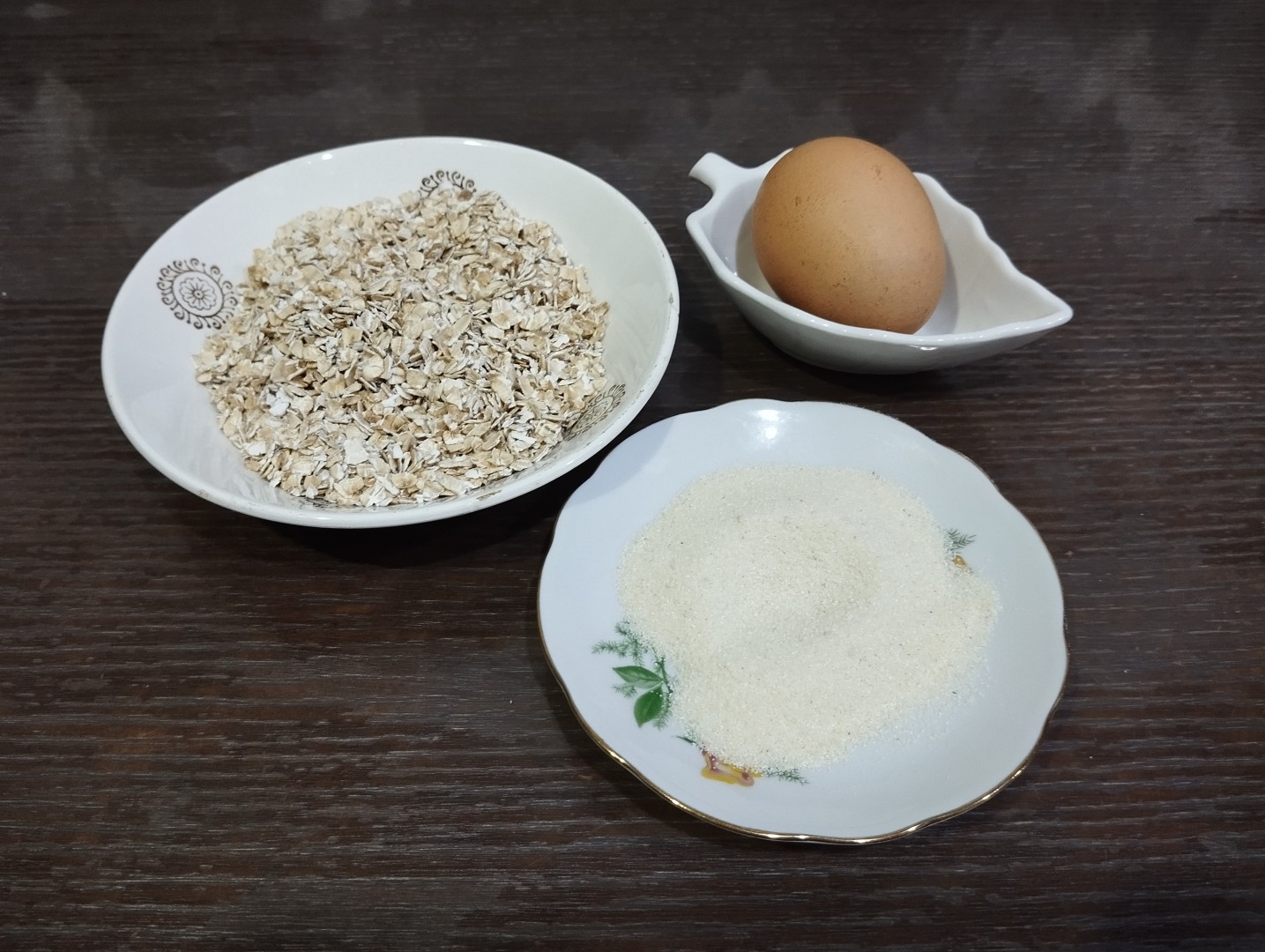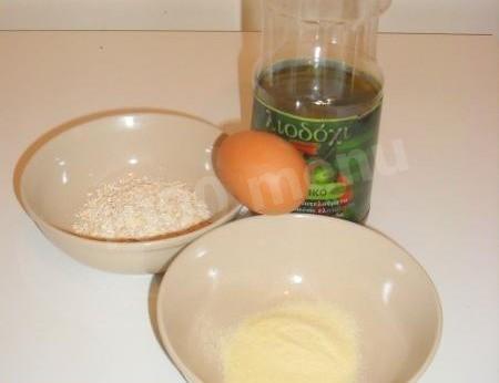 Подготовьте все необходимые ингредиенты по списку. Овсяные хлопья берите среднего помола, не быстрого приготовления. Они лучше держат структуру. Манку лучше взять из твердых сортов пшеницы для лучшей пышности.