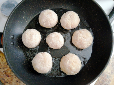 В сковороде на огне выше среднего разогрейте растительное масло. Выложите тефтели и обжарьте со всех сторон до румяной корочки. В конце огонь убавьте до минимального.