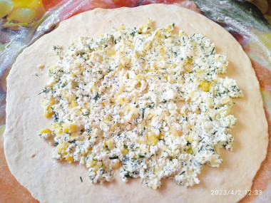 Такой пирог можно сделать с различной начинкой. Это разнообразные комбинации творога, сыра и зелени, с добавлением овощей и мясных продуктов.