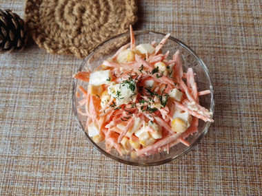 Салат мне и семье очень понравился. Он сочный, вкусный, хрустящий (за счет морковки) и нежный (благодаря яйцам). Жемчужинка, спасибо за рецепт!