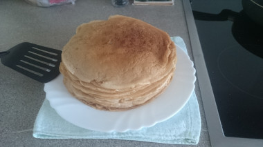 Приготовленные постные пшенично-гречневые блины выкладывайте из сковороды на тарелку и подавайте к столу.