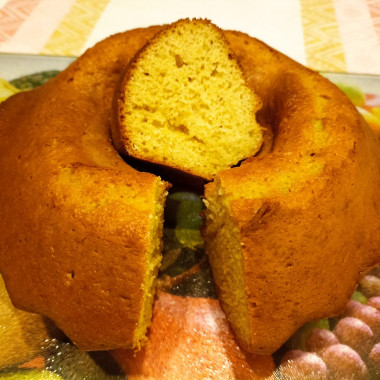 Пирог хорошо поднялся, мягкий, пористый! Уютно пахнет ванилью! На вкус в меру сладкий. Я бы добавила лимон или апельсин в следующий раз.