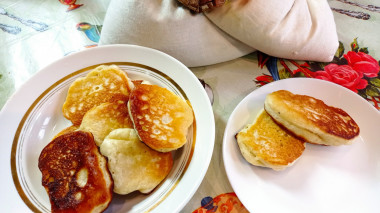 Оладьи получились пышными, мягкими и нежными. И очень вкусными. Дочка, выпучив глазëнки и подняв большой палец вверх, сказала: "Мама, такие вкусные!"