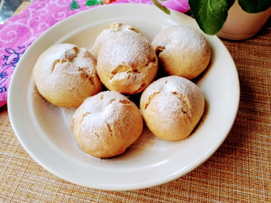 Результат выпечки - булочки. Вкус у них прекрасный, они чудесны к чаю и просто так. Несмотря на разность ожидания и результата я рада тому, что получилось.