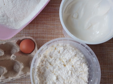 Замесила тесто по рецепту. Творог предварительно пробила погружным блендером. Вместо разрыхлителя взяла соду гашеную уксусом из алычи.