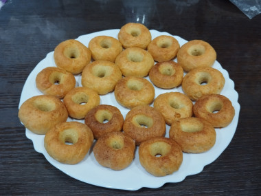 И вроде все шло хорошо и пончики были похожи на пончики. Но тут пришло время выпекания в результате которого тесто повело себя не совсем так как я рассчитывала. Оно довольно сильно поднялось и отверстия на некоторых получившихся булочках даже сложно было угадать.