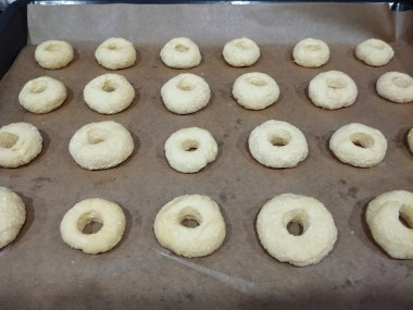 Из каждой заготовки теста вырежьте серединку. Удобно делать это присыпанной мукой кондитерской насадкой.