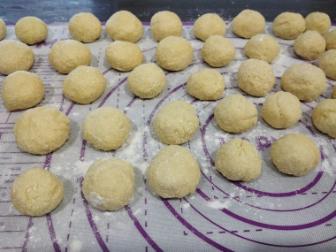 Тесто раскатайте и разделите на 12 равных частей. Из каждого кусочка теста сформируйте шарик.