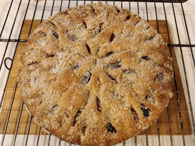 Сливочное масло для штрейзеля вынула из морозилки, пока нарезала замороженные сливы ломтиками, и смешивала ингредиенты для теста, масло уже стало мягким и прекрасно смешалось в ароматную крошку.