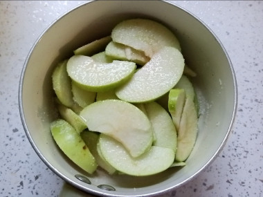 Яблоки очистить от семян (и по желанию кожуры) и нарезать средними ломтиками.