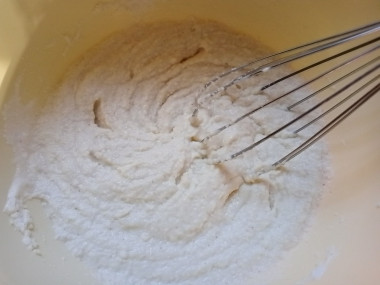 Добавьте разбухшую манную крупу, разрыхлитель и соль. Снова все взбейте до однородности. Мука в этом тесте не нужна. Но если тесто получается слишком жидкое, можно добавить 1-2 ст. л. без горки просеянной муки. Она заберет лишнюю влагу.