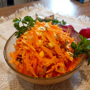 Салат морковь яйцо чеснок...Конечно, просто, конечно вкусно, и не просто вкусно, а ярко, остро, сочно! Потрясающе хрустяще и ароматно! Рекомендую всем эту прекрасную закуску из простых продуктов, кладезь витаминов и взрыв вкуса! Автору огромное спасибо!