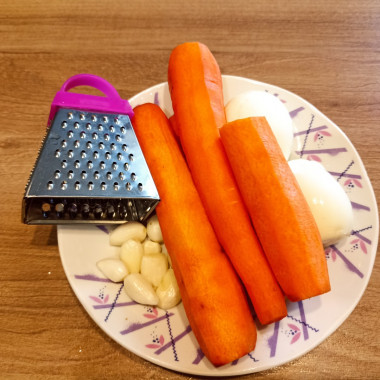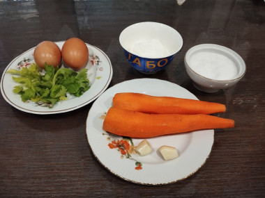 Как сделать салат из моркови, яиц и чеснока? Подготовьте все продукты, которые указаны в рецепте. Для салата можно использовать сырую морковку или отварную, как вам больше нравится. Количество чеснока уменьшите или увеличьте по вкусу.