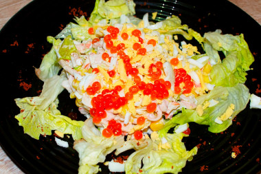 Перед подачей кулинарное кольцо снимите. Салат украсьте икрой и свежей зеленью. Приятного аппетита!