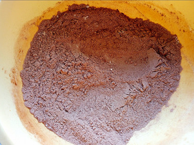 Возьмите глубокую миску и просейте в нее муку. Этим вы не только избавите ее от возможного мусора, но и насытите кислородом, что сделает печенье более пышным. Также просейте какао-порошок, так как оно часто сбивается в комочки. Всыпьте к муке с какао разрыхлитель и щепотку соли.