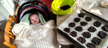 Противень застелите бумагой для выпечки. При помощи ложки для мороженого (или двух обычных ложек) выложите тесто в виде комочков на большом расстоянии друг от друга — печенье сильно вырастет при выпечке. У меня получилось 13 штук. Но я бы посоветовала вам делать комочки меньше размером, тогда их получится больше. Идеальным будет размер с грецкий орех.