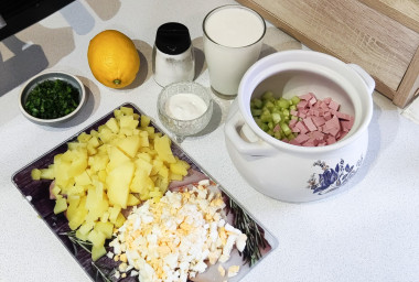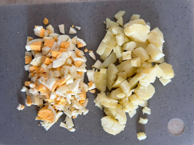Первым делом отварите яйца и картофель до готовности, а затем остудите.