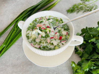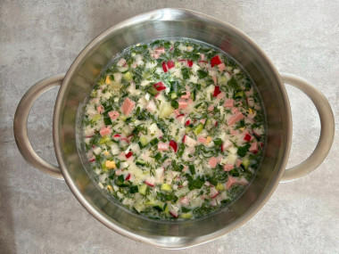 Решила попробовать приготовить по рецепту окрошка на кефире с минералкой.