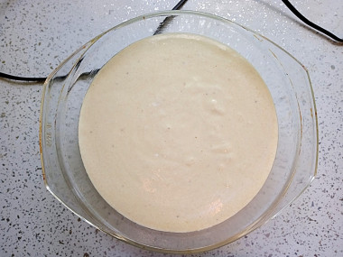 Затем добавьте в получившуюся массу сахар, соль и муку, перемешайте венчиком. Вбейте в миску яйца, добавьте сметану. Миксером взбейте все вместе до пышности и однородности.