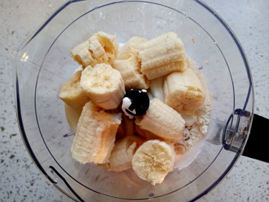 Пробейте творог с бананами погружным блендером. Должна получиться однородная кремообразная масса.