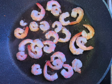 В сковороде на среднем огне разогрейте сливочное масло и подрумяньте креветки с двух сторон.