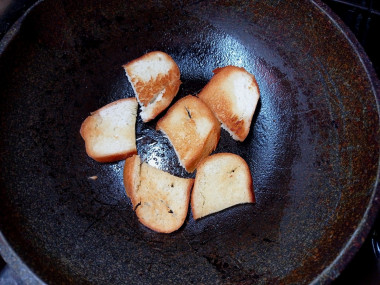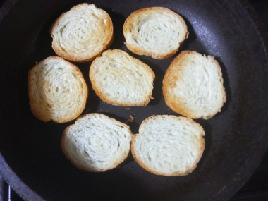 Ломтики хлеба выложите на сухую сковороду и слегка подрумяньте с двух сторон.