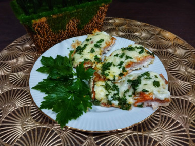 Рыбу я разделала на филе, лук порезала полукольцами, сыр натерла на мелкой тёрке, зелень петрушки мелко порезала.