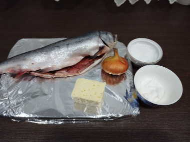 Как запечь горбушу с майонезом, луком и сыром в духовке? Подготовьте все указанные по списку продукты. Горбушу лучше использовать свежую, не подвергавшуюся заморозке, тогда готовое блюдо получится особо сочным. Если же у вас замороженная рыба, то её нужно предварительно вынуть из морозильной камеры и оставить при комнатной температуре до полного оттаивания. Для рецепта возьмите филе горбуши или стейки.