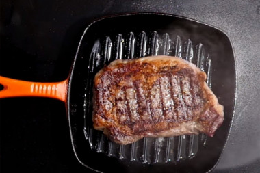 Готовить стейки можно на сковороде-гриль или на мангале. Жареная на углях говядина получается особо вкусной и сочной.