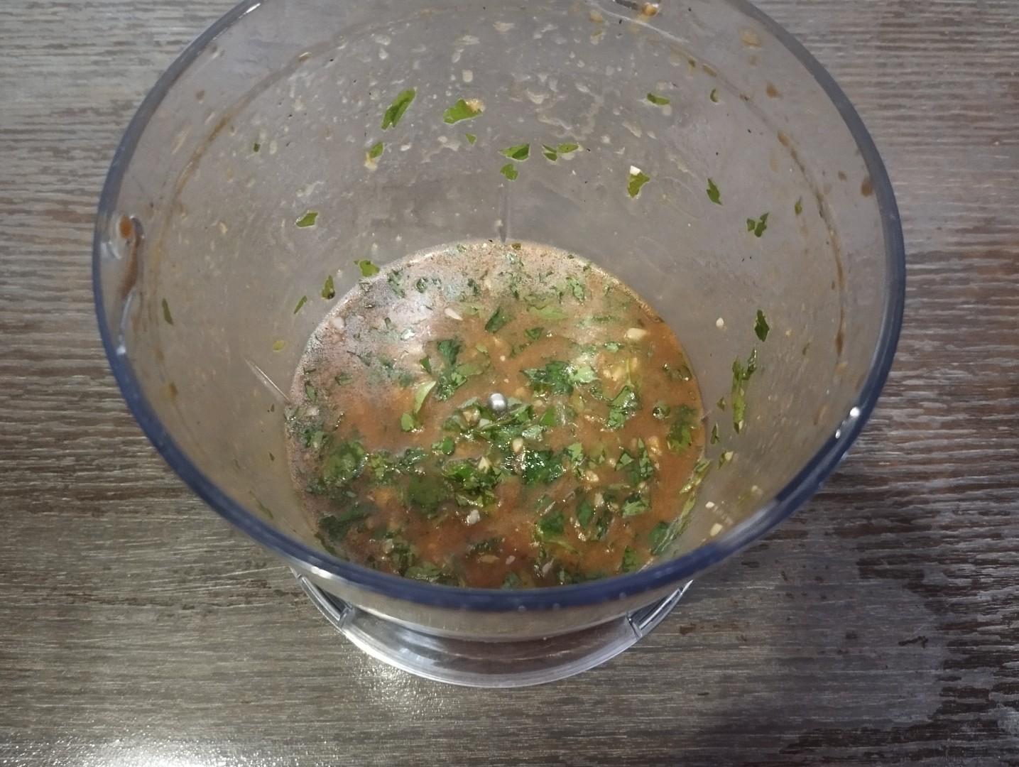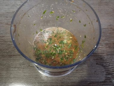 Подготовьте маринад. В чашу блендера влейте растительное или оливковое масло и соевый соус.