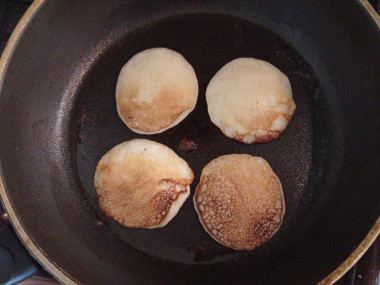 Готовьте оладьи на небольшом огне, примерно, по минуте с каждой стороны до золотистого цвета.