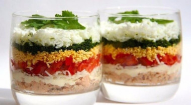 Перед подачей снимите кольцо, украсьте салат сверху по желанию. Приятного аппетита!