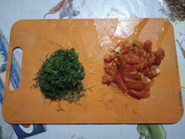 Помидоры для салата выбирайте сочные, но не переспевшие, с толстой кожицей. Важно, чтобы они при нарезании сохранили свою форму. Помидоры помойте, обсушите, нарежьте не слишком мелкими кубиками.