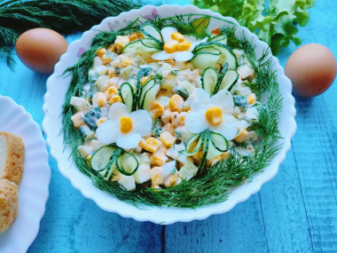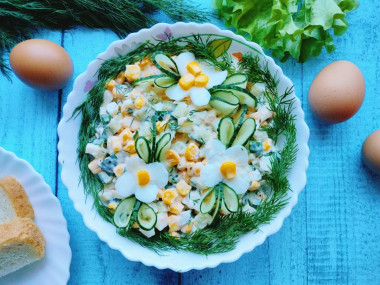 Кукуруза очень освежает привычное сочетание огурца с яйцом. Спасибо за отчет!