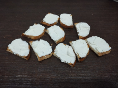 При желании ломтики багета можете не подсушивать, а использовать в свежем виде. Получится не менее вкусно, особенно если багет свежий, с хрустящей корочкой.