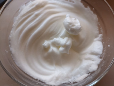 Охлажденные белки взбейте миксером с щепоткой соли до получения воздушной плотной пены.