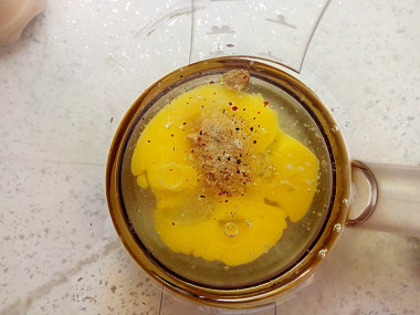 Возьмите высокий стакан от погружного блендера. Вбейте в него вымытые и высушенные яйца. Так как яйца не будут подвергаться термической обработке, отнеситесь к их выбору очень внимательно. Влейте к яйцам лимонный сок, добавьте горчицу, сахар, перец и соль по вкусу.