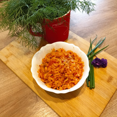 Если рис еще немного твердый, а воды уже нет, то можно её добавить ещё совсем немного. Готовый рис снимите с огня и оставьте постоять под крышкой 5-10 минут. Рис с томатной пастой можно подать к любому мясному или рыбному блюду. Приятного аппетита!