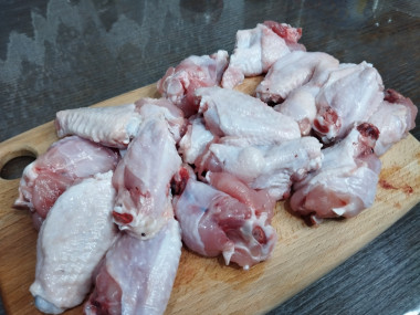 У каждого куриного крылышка удалите самую маленькую часть. В ней практически нет мяса и при запекании она начет подгорать. Поэтому она нам не понадобится.