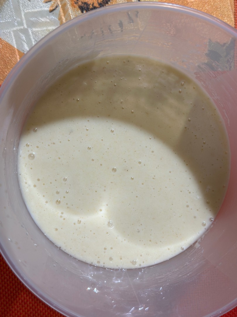 Миксером на небольших оборотах перемешайте все ингредиенты до однородности. Тесто должно получиться текучим, средней густоты. На этом этапе вы можете добавить в него любые сухофрукты, фрукты, ягоды, как свежие, так и замороженные.Шаг 7: