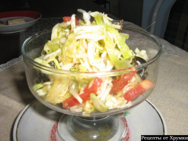 Вкусненький и легенький салатик. Как по составу так и по приготовлению. Время всего то занял полчаса.