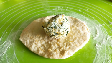 Края лепешки приподнимите, собирая тесто вокруг начинки, хорошо защипайте.
