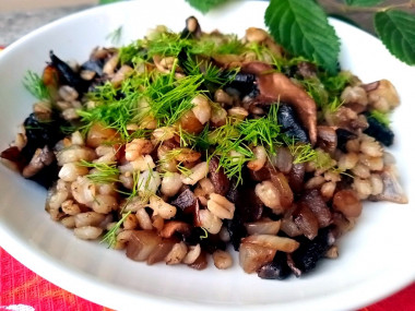 Перловка с грибами готова! Подавайте к столу в горячем виде. Приятного аппетита!