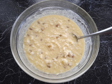 Во взбитые с сахаром желтки добавьте рисовую массу и изюм с лимонным соком. Все перемешайте.