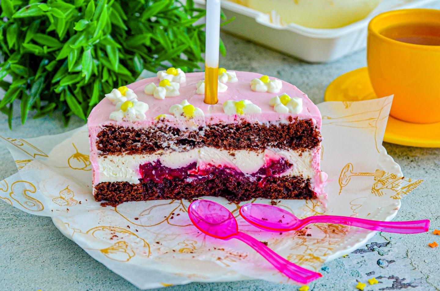 Очень вкусный вишневый с кремчизом. Все домашние очень оценили, а сам именинник рвался попробовать, но ему пока еще рано, так что еще подождет 😁