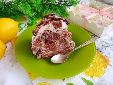 Нам этот торт очень понравился! Он вкусный, но не приторный. Вишня хорошо сочетается с какао и сметаной! Кусочки коржа отлично пропитались кремом. Торт легко нарезается на кусочки, не разваливается.
