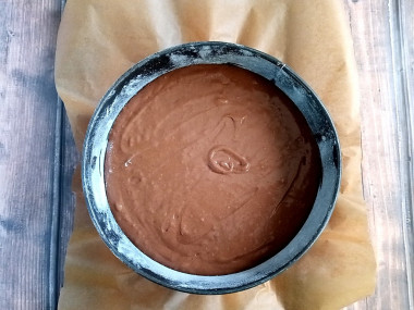 Вылейте тесто в застеленную пергаментом форму для выпечки (Ø 20-22 см) и разровняйте. Поставьте в разогретую до 170°С духовку на 30-35 минут. Подробнее о том как правильно подобрать форму для выпечки, а также время и температуру выпекания читайте в статье. Ссылки находятся в конце рецепта.