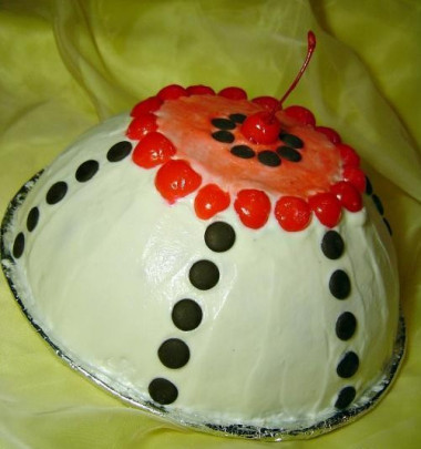 На семейное торжество сделала сметанный торт Панчо с вишней по этому рецепту. Давно хотела соорудить именно такой торт - перевертыш). Описание действий подробное, что существенно облегчает задачу.