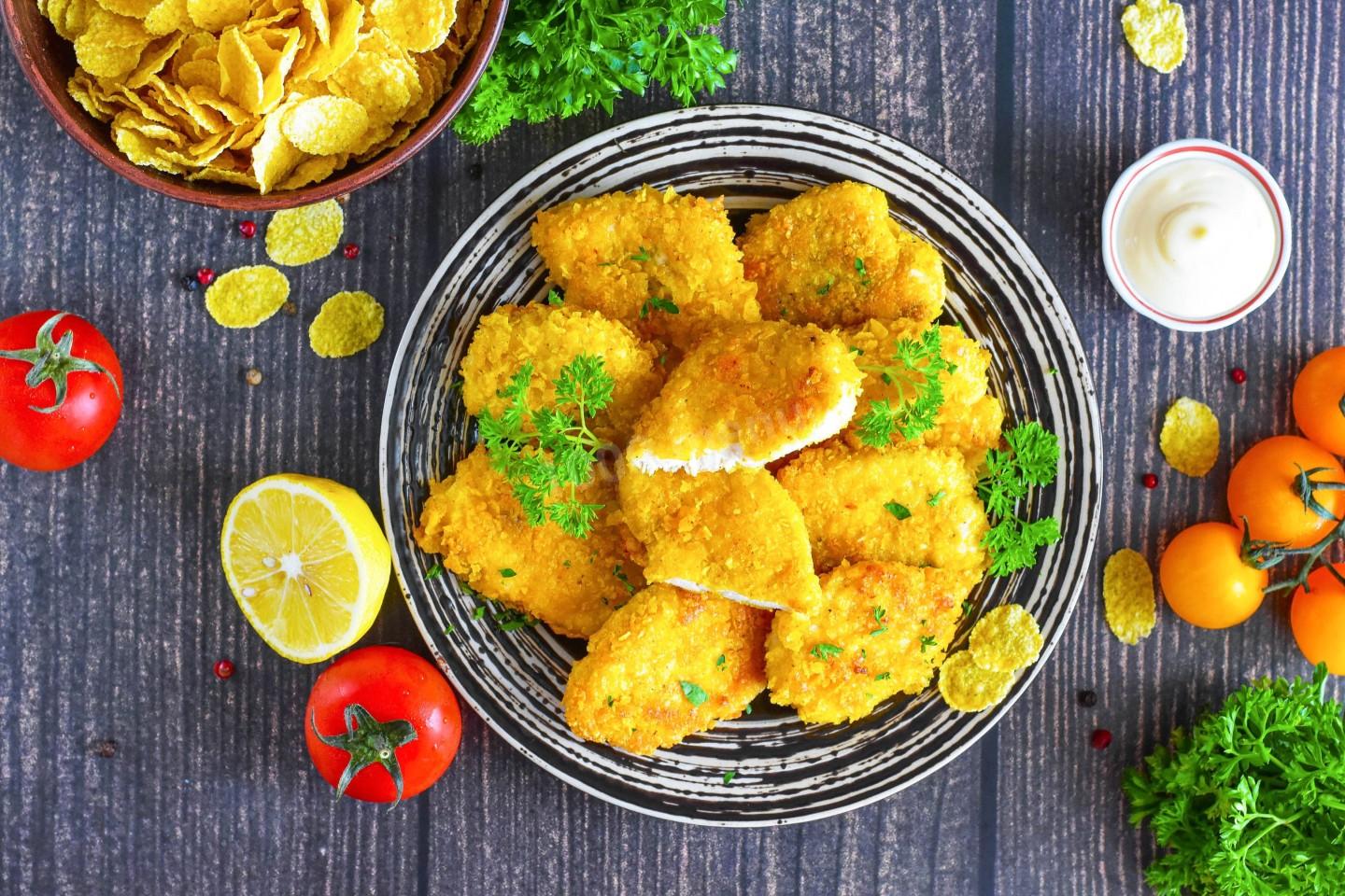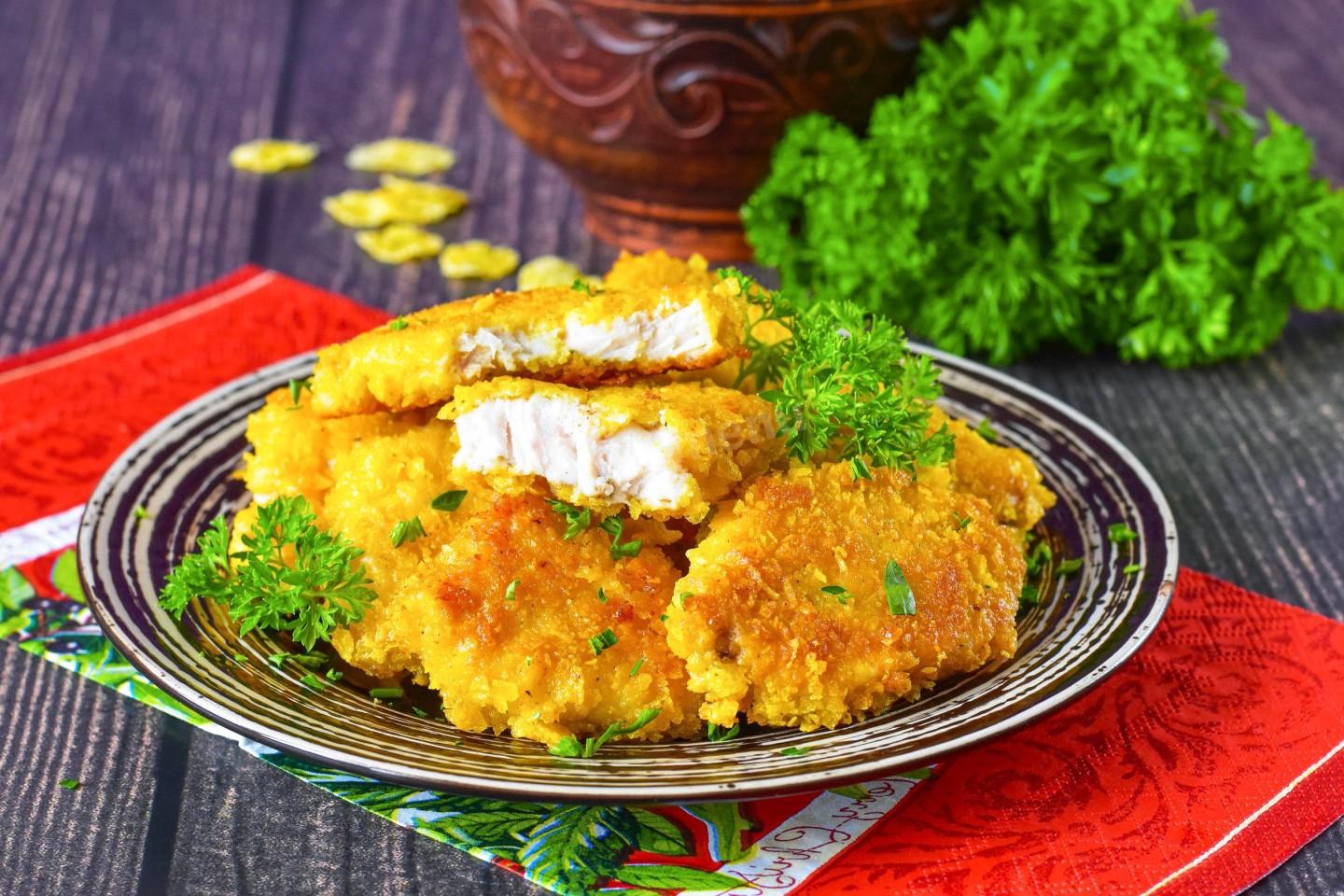 Курица в панировке популярна во многих кухнях мира: от американского фрида чикен до европейского шницеля. Панировка из кукурузных хлопьев — необычная идея, где хрустящая текстура сочетается с нежным мясом.