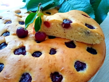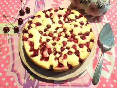 Вышел замечательный пирог по этому рецепту. Тесто воздушное, нежное и мягкое. Сладкий бисквит прекрасно дополняет вишня с кислинкой. Спасибо автору!!!